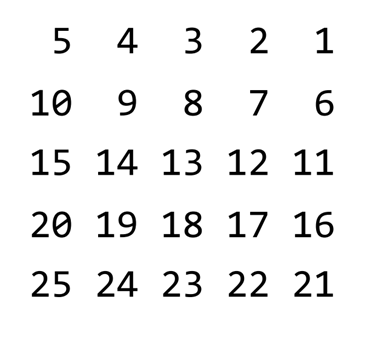 Cho bảng vuông kích thước N × N. Các số tự nhiên từ 1 đến N^2 được điền lần lượt từ phải qua trái, từ trên xuống dưới.