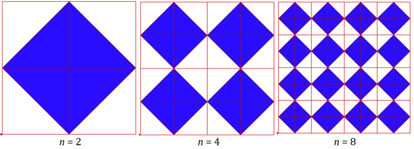 Một mảng tường vuông có kích thước NxN hình vuông đơn vị (với N là số chẵn) được trang trí hoa văn như sau: