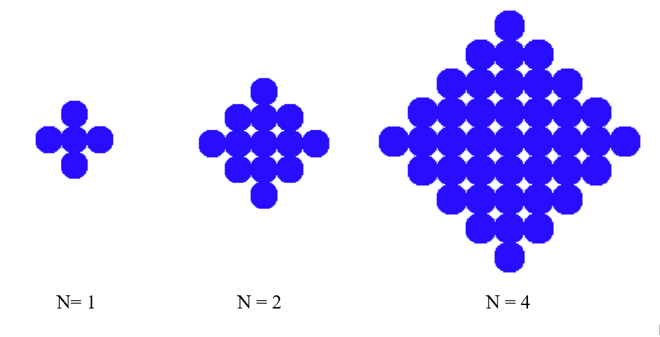 Bậc 1 là xếp thêm 1 lớp 4 hình tròn vào 4 hướng của hình tròn ban đầu.