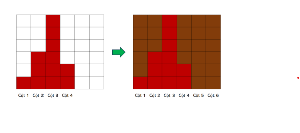 24 | Cần thêm để mỗi cột có 6 hình vuông cơ bản: (6−1)+(6−3)+(6−6)+(6−2)=12. Cần thêm 2 cột mới cao 6 tầng: 2×6=12. Tổng cần thêm: 12+12=24 |