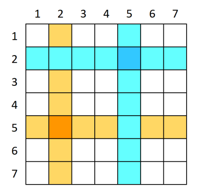 Sau đó, tô màu toàn bộ các hàng và các cột đi qua ít nhất một trong hai ô này.