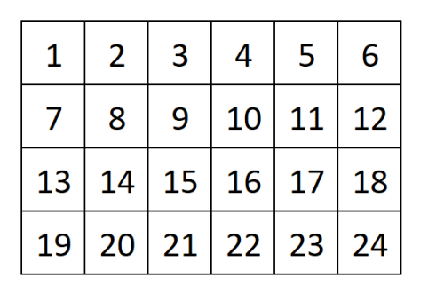 Cho bảng số gồm M dòng và N cột, được điền các số từ 1 đến M × N theo thứ tự từ trái sang phải, từ trên xuống dưới.